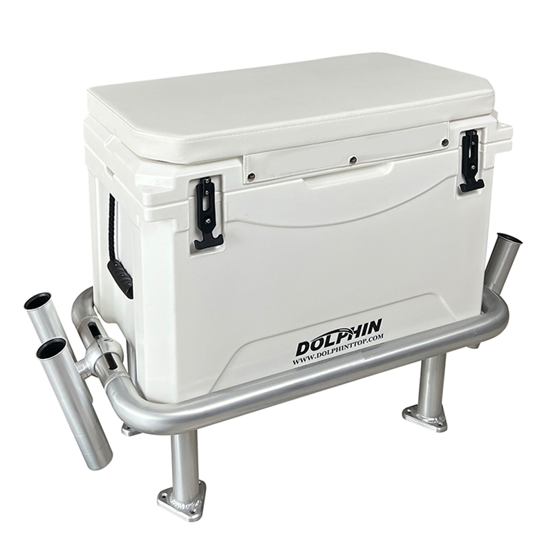 Coming with white seat, aluminum frame and all mounting hardwares, which makes it not only a fishing cooler but also a seat. The aluminum frame add the seat height to be a standard leaning post, so you can use it as a leaning post and save the room on boat.